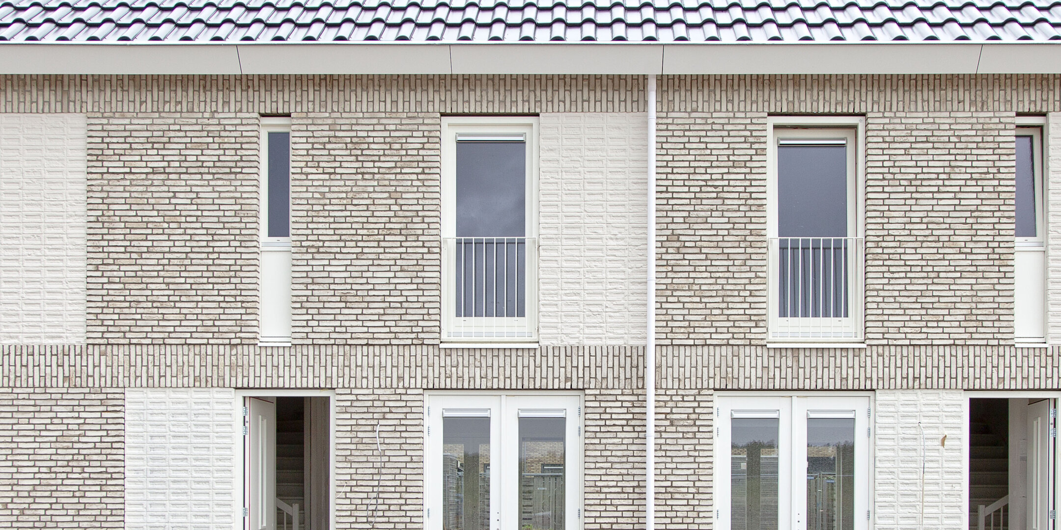 De woningen staan op een bijzondere plek rondom de vindplaats van een oud scheepswrak. Dit heeft ons geïnspireerd tot een speels lijnenspel in de gevels. Het verwijst naar de grondlagen en het golven van de zee.